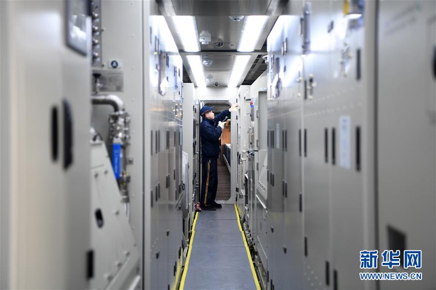 1月7日,铁路员工在对CR200J动车组列车车内设施进行检测维护。新华社记者 唐奕 摄