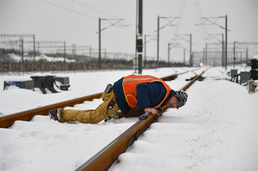 临近春运,铁路客流量增多。太原高铁工务段的设备巡检人员不畏严寒坚守岗位,确保钢轨状态良好,保障列车安全运行。