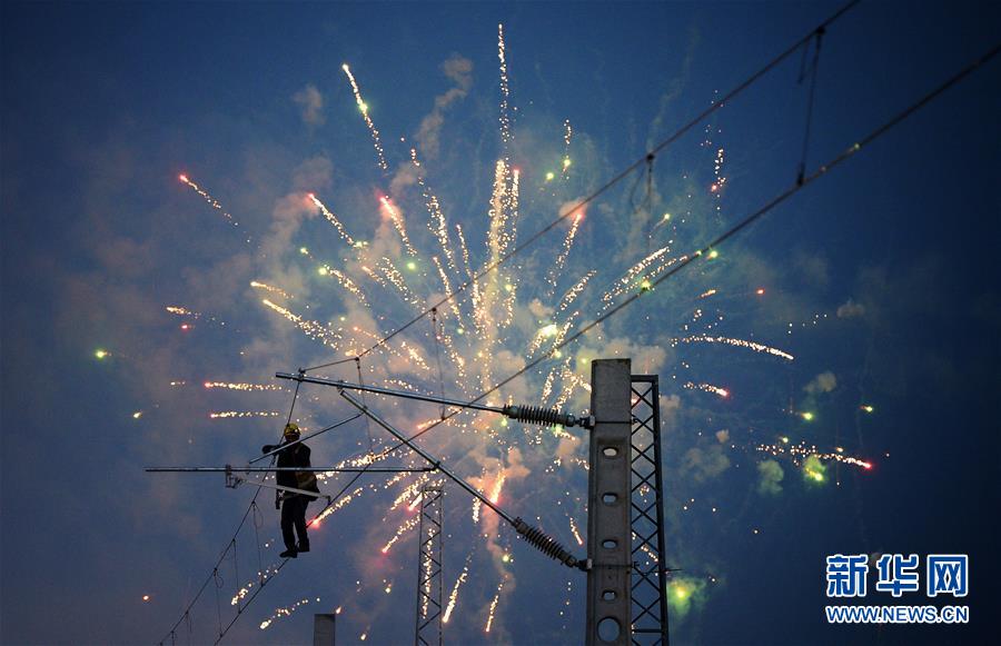 1月7日,中铁七局的铁路建设者在进行铁路线路接触网施工。 当日,在西安市临潼区新丰镇,西安火车站站改扩建工程新丰至窑村段增建二线线路,在中铁七局千余名铁路建设者的奋战下全线贯通。该线路全长23.1公里,开通后将有效缓解全国铁路重要枢纽——新丰镇车站的紧张状态、扩充陇海线运能、畅通入川货运通道、缓解北煤南运压力,为即将开始的春运提供保障。 新华社记者 刘潇 摄