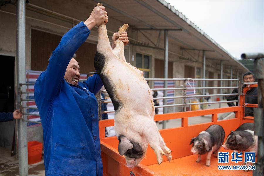 1月8日,在老粮仓镇一家畜牧科技有限公司,工作人员将挑选出来的花猪仔搬上运输车。 当日,在湖南省宁乡市老粮仓镇,当地扶贫部门组织生猪养殖企业为有生猪养殖意愿和能力的贫困户免费发放猪仔,让贫困户通过养殖实现增收。猪仔发放将持续到3月底。 新华社发(陈思汗摄)