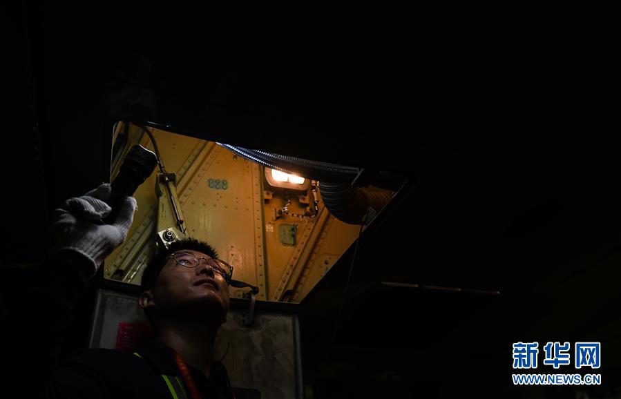 1月9日,在海口美兰国际机场停机坪上,南方航空海南分公司飞机维修工程师对飞机主轮舱进行检查。 春运临近,南方航空海南分公司组织工程师加强飞机维护工作。春运期间,南方航空公司在海南至上海、广州、深圳等热门航线投入加班984班。 新华社记者 杨冠宇 摄