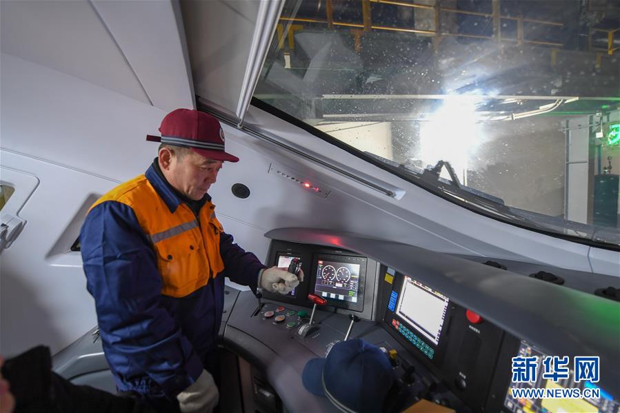 1月9日,在吉林省长春市,中国铁路沈阳局集团有限公司长春电务段长春车载设备车间工人张伟东在检测列车驾驶室内的电器设备。新华社记者 张楠 摄