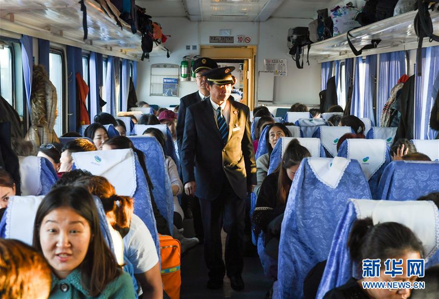 1月7日,车长王志强在车厢中巡查。新华社记者 彭源 摄