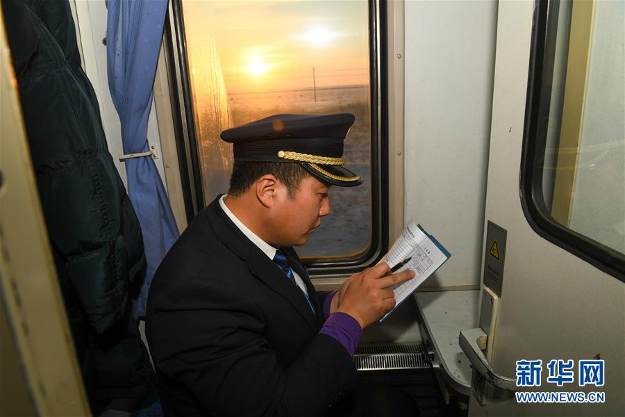 1月7日,列车员穆杰在写交接班日志。新华社记者 彭源 摄