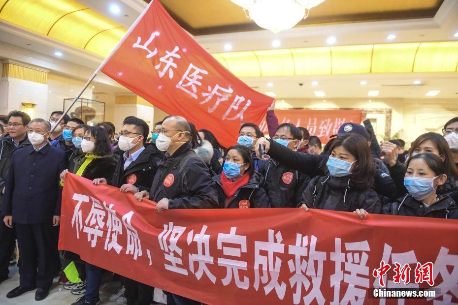 1月25日晚,山东首批医疗队138名医务人员奔赴武汉,支援湖北开展新型冠状病毒感染的肺炎医疗救治工作。中新社记者 张勇 摄