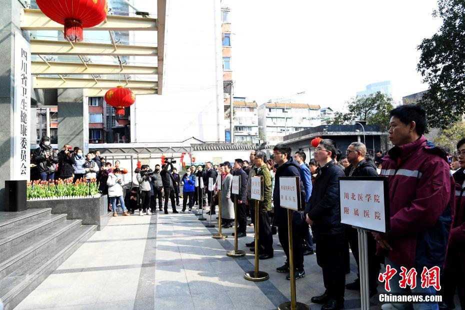 1月25日,根据国家卫健委统一部署,由138名队员组建的四川省第一批援助湖北医疗队正式出发,赶赴湖北援助新型冠状病毒感染的肺炎救治工作。第一批援助湖北医疗队由来自四川大学华西医院、四川省人民医院、四川省第四人民医院、西南医科大学附属医院、川北医学院附属医院、成都医学院第一附属医院、成都中医药大学附属医院、四川省第二中医医院、西南医科大学附属中医医院等医疗单位呼吸科、感染科医师和护理人员组成。图为出发仪式现场。安源 摄