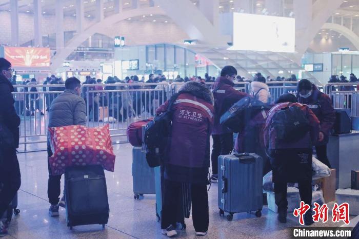 1月26日晚间,由河北省150名医务人员和工作人员组成的医疗队在石家庄站乘车赶赴湖北省,援助当地新型冠状病毒感染的肺炎救治工作。医疗队来自该省10个省直医院和11个市三级医院,分成普通患者、危重症患者救治和临床检验3个医疗队,涵盖呼吸科、感染性疾病科、医院感染科、重症医学、呼吸重症、临床检验6个专业,其中医生42名,护理人员93名,临床检验医技人员10名。(肖光明 张帆)