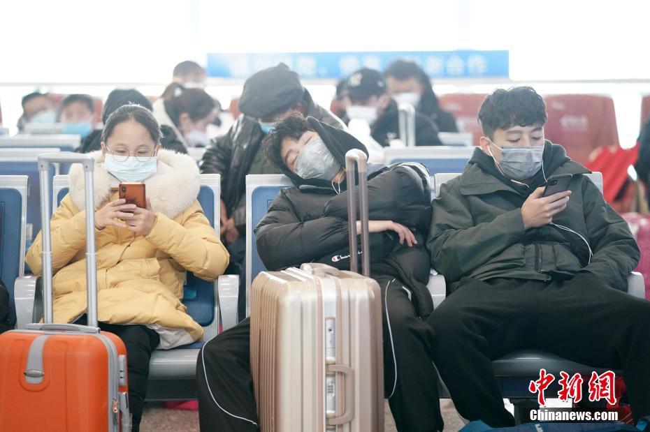 1月27日,受新型冠状病毒感染的肺炎疫情影响,安徽蚌埠南站内,旅客佩戴口罩候车。中新社记者 张兴龙 摄