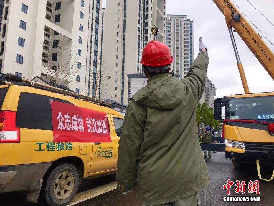 1月27日,武汉市江夏供电公司300名技术骨干组成的应急队伍参与雷神山医院筹建与电力建设保电工作。武汉雷神山医院是参照“小汤山”医院模式新建的第二座专门救治新型冠状病毒感染的肺炎患者医院,于26日正式开建。中新社发 姚华力 摄