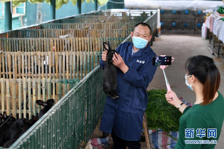 2月26日,江西省宜春市科技特派团成员、畜牧专家韩国荣(左)在万载县三兴镇黑兔良种繁育基地利用微信视频的方式,向养殖户讲解黑兔的养殖技巧。 当下正值春耕时节。江西省宜春市在做好疫情防控同时,组织298名科技特派员深入农业生产一线,通过“线上+线下”模式、非接触式与实地指导相补充的方式向农户传授果蔬种植技术和畜牧养殖技巧,及时解决农民在农业生产过程中遇到的难题,为脱贫攻坚和春耕生产提供科技支撑和保障。 新华社发(周亮 摄)