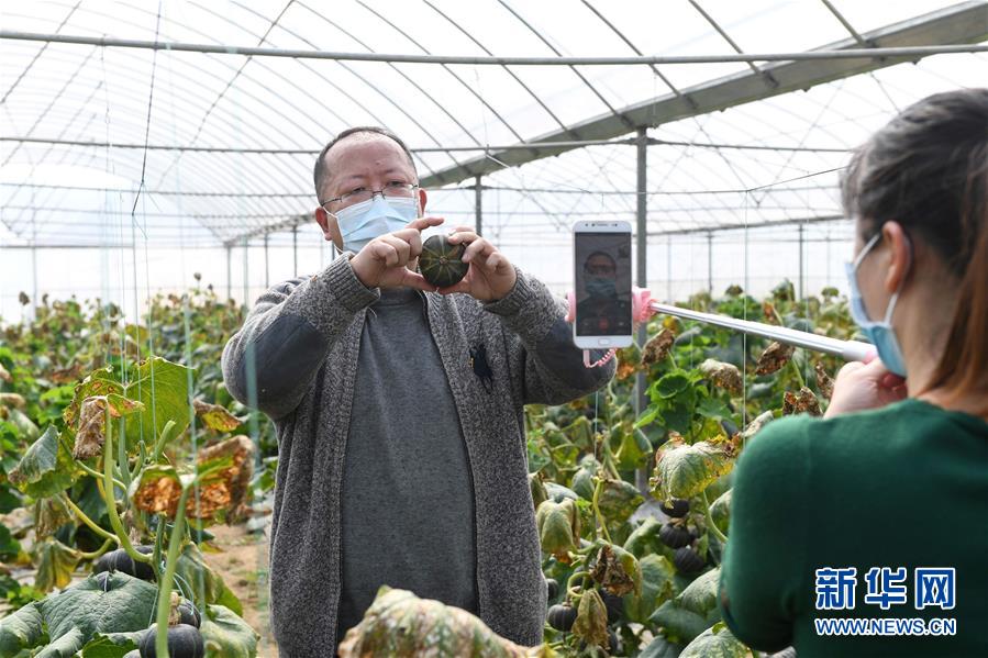 2月26日,江西省科技特派团成员、蔬菜专家熊波在宜春市万载县三兴镇恒辉有机蔬菜种植基地利用微信视频的方式,向种植户讲解板栗南瓜的栽培技巧和病虫害防治方法。 新华社发(周亮 摄)
