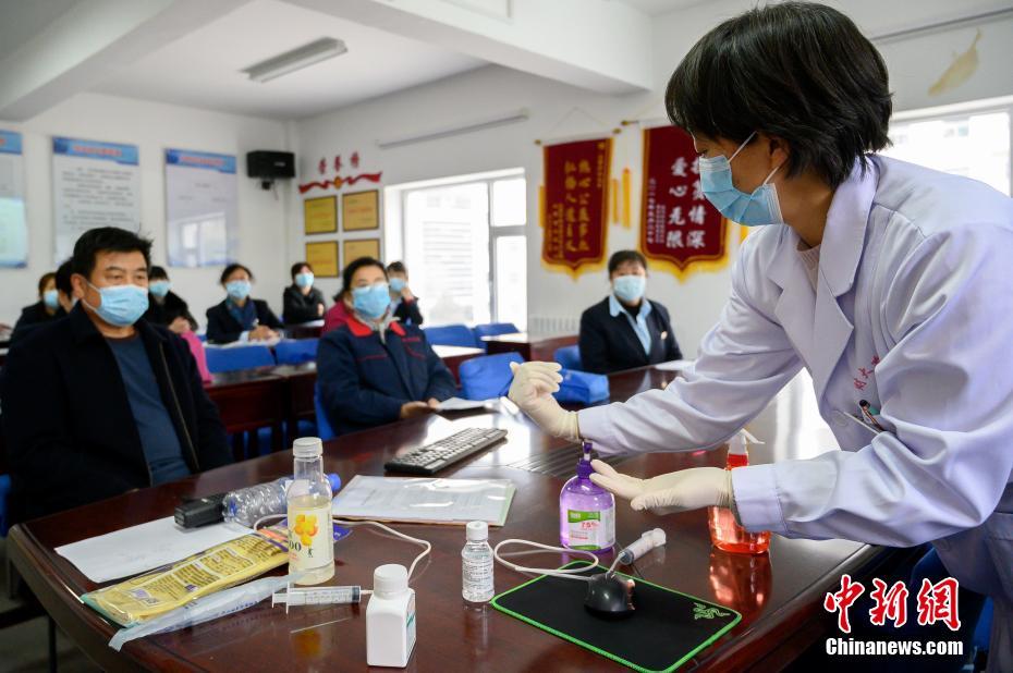 4月9日,山西省太原市,山西财经大学学生宿舍楼管在校医院学习防疫知识。按照当地政府安排,山西省高校本硕博毕业年级和高职高专毕业年级分别从4月10日、4月15日起错峰分批开学,一周内基本实现主体开学。中新社记者 韦亮 摄