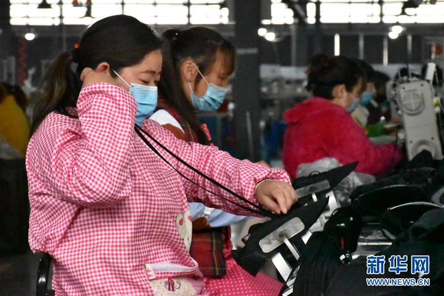 4月9日,河南睢县潮庄镇胡寺村扶贫车间内,工人在一家制鞋企业车间工作。 近年来,河南省商丘市睢县许多制鞋企业的配套加工车间纷纷入驻村级扶贫车间,助力贫困群众脱贫增收。 新华社记者 张浩然 摄