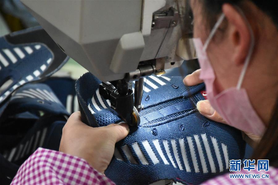 4月9日,河南睢县周堂镇齐庄村扶贫车间内,工人在一家制鞋企业车间工作。 近年来,河南省商丘市睢县许多制鞋企业的配套加工车间纷纷入驻村级扶贫车间,助力贫困群众脱贫增收。 新华社记者 张浩然 摄