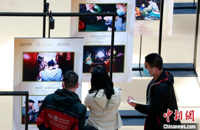 “向最美逆行者致敬”援鄂抗疫公益摄影展在上海正大广场举行。 汤彦俊 摄