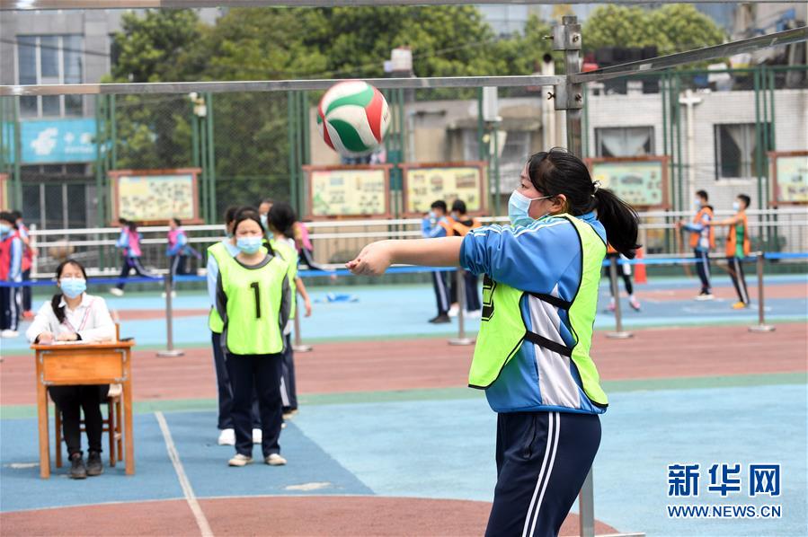 4月10日,贵州省贵阳市第十五中学初三年级的学生进行体育模拟测试。贵州省贵阳市初三、高三年级学生自3月16日返校复课以来,积极备战中考和高考。 新华社发(赵松 摄)