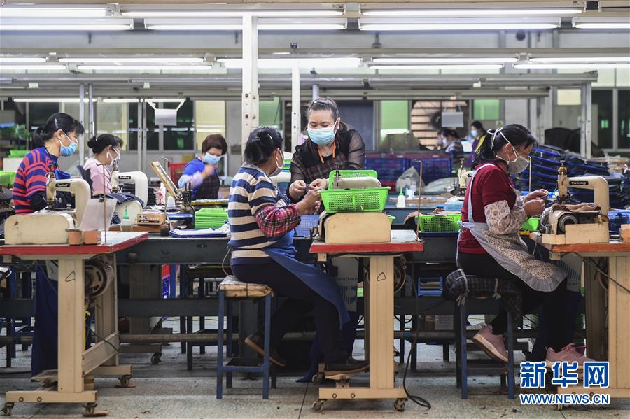 工人在广西桂平市的一家扶贫车间内作业(2月28日摄)。新华社记者 曹祎铭 摄
