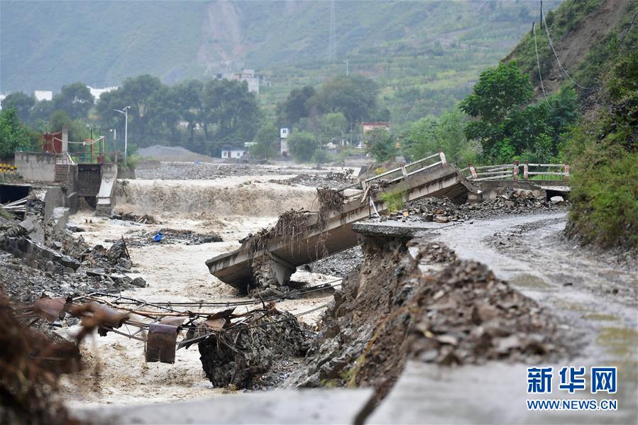 这是舟曲县部分损毁道路和桥梁(8月23日摄)。 新华社记者 陈斌 摄