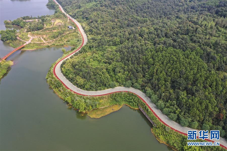 这是9月2日在重庆市铜梁区玄天湖拍摄的西郊绿道(无人机照片)。 新华社记者 黄伟 摄