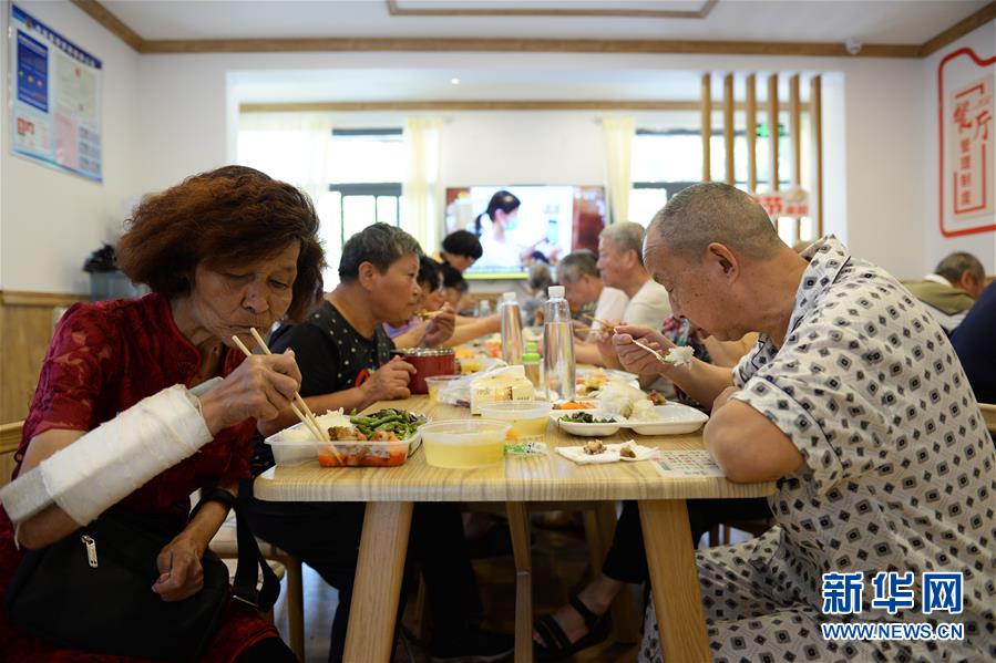 9月9日,老人在开福区砚瓦池社区“老年餐桌”用餐。