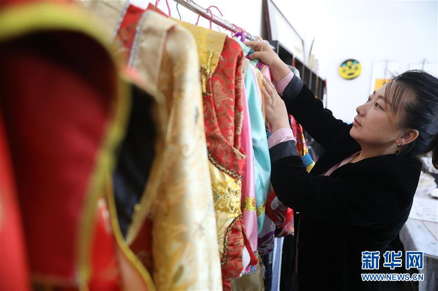 9月8日,村民柳娟在大梨树村满族文化工作室内整理满族服饰。 辽宁省丹东市凤城市大梨树村曾是一个贫穷落后小山村。多年来,大梨树人发扬苦干、实干、巧干的精神,坚持集体经济与民营经济同步发展,农工商旅一体化推进,如今已发展成总资产16亿的“美丽乡村”,村民就业率达百分之百。 新华社记者 姚剑锋 摄