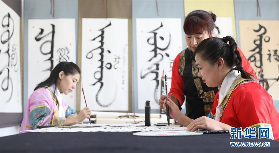 9月8日,村民鲍迎春(右二)在大梨树村满语学堂内教学员练习满语书法。 辽宁省丹东市凤城市大梨树村曾是一个贫穷落后小山村。多年来,大梨树人发扬苦干、实干、巧干的精神,坚持集体经济与民营经济同步发展,农工商旅一体化推进,如今已发展成总资产16亿的“美丽乡村”,村民就业率达百分之百。 新华社记者 姚剑锋 摄