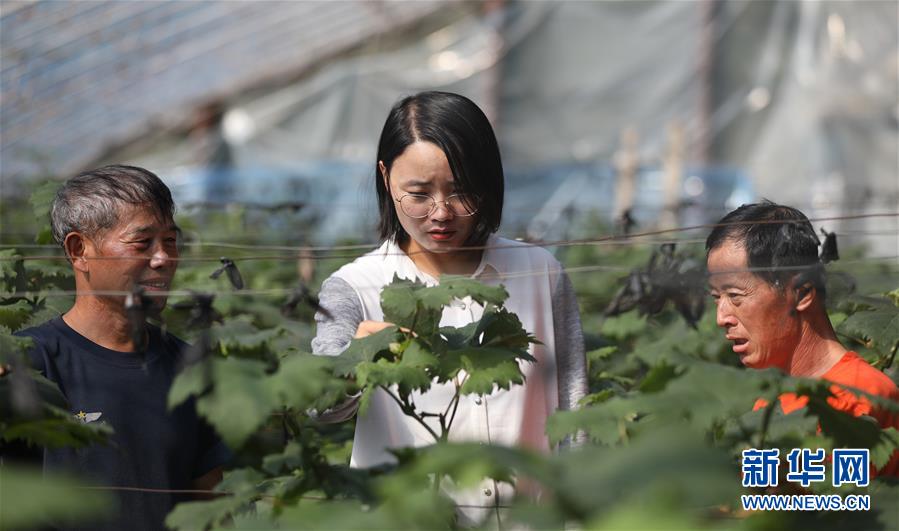 9月9日,袁媛(中)在温室大棚内指导村民观察作物长势。从沈阳农业大学毕业的袁媛是大梨树村农业技术员。 辽宁省丹东市凤城市大梨树村曾是一个贫穷落后小山村。多年来,大梨树人发扬苦干、实干、巧干的精神,坚持集体经济与民营经济同步发展,农工商旅一体化推进,如今已发展成总资产16亿的“美丽乡村”,村民就业率达百分之百。 新华社记者 姚剑锋 摄