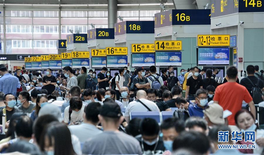 9月10日,旅客在北京南站乘车出行。 近日,北京南站日均接发旅客超过九万人次,客流量逐渐恢复。随着疫情防控常态化,北京南站持续对进站和到达旅客实时进行无接触体温检测,严格对车站进出站口、候车室、检票口、卫生间、通道等区域进行严格清洁消毒,同时加强对通风设施的检查,为旅客创造安全健康的出行环境。 新华社记者 李欣 摄