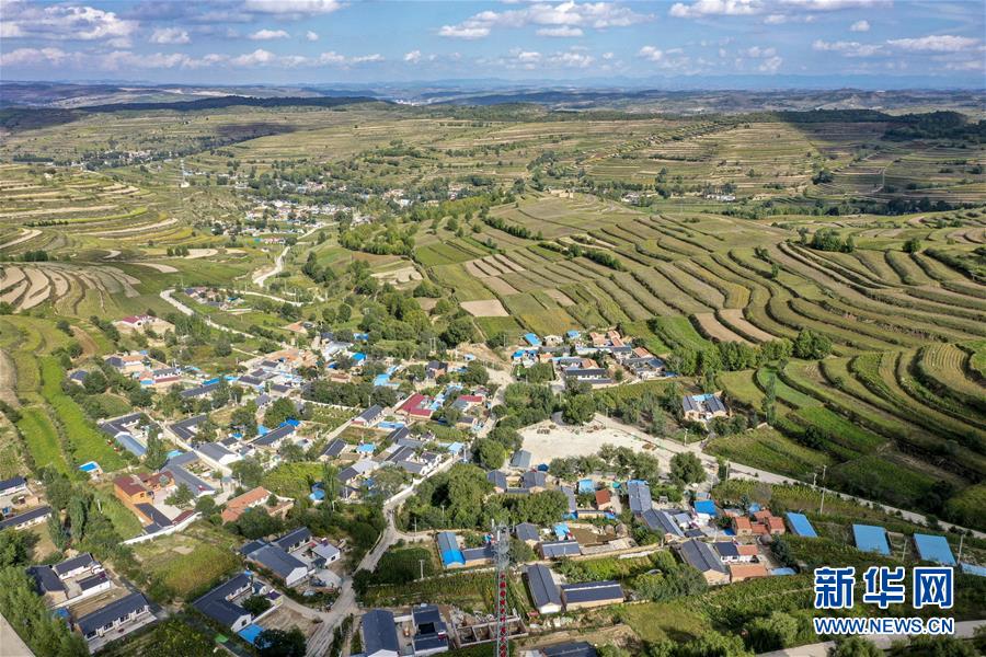 这是9月10日拍摄的宁夏固原市西吉县吉强镇龙王坝村(无人机照片)。新华社记者 冯开华 摄