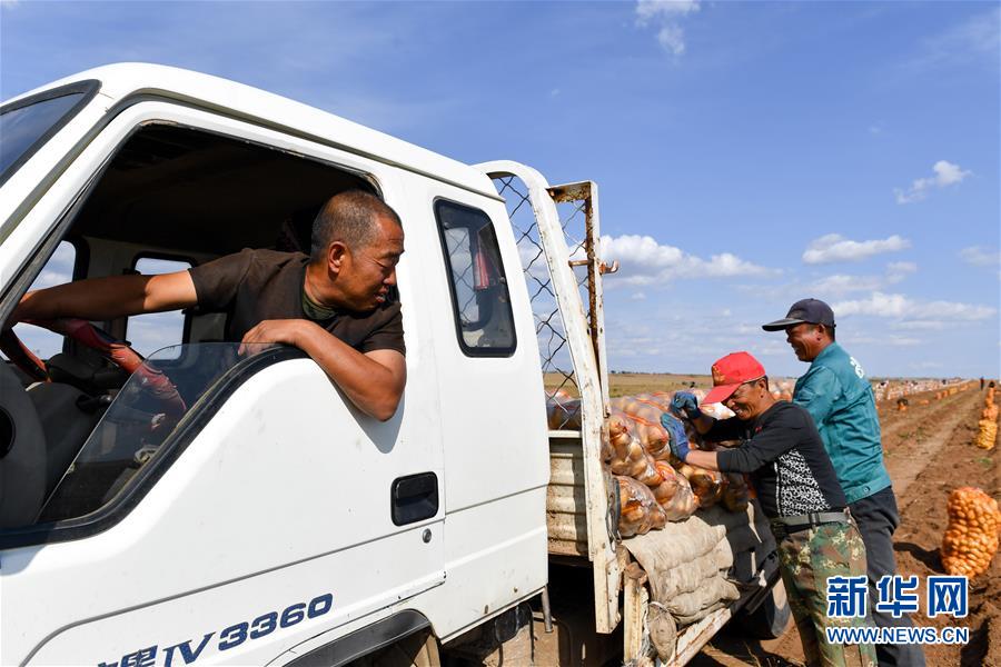 9月14日,农民在田间收获土豆。 秋收时节,在内蒙古自治区呼和浩特市武川县上秃亥乡厂汉木台村的农田里,农民忙着收获土豆,一片热闹景象。 新华社记者 贝赫 摄