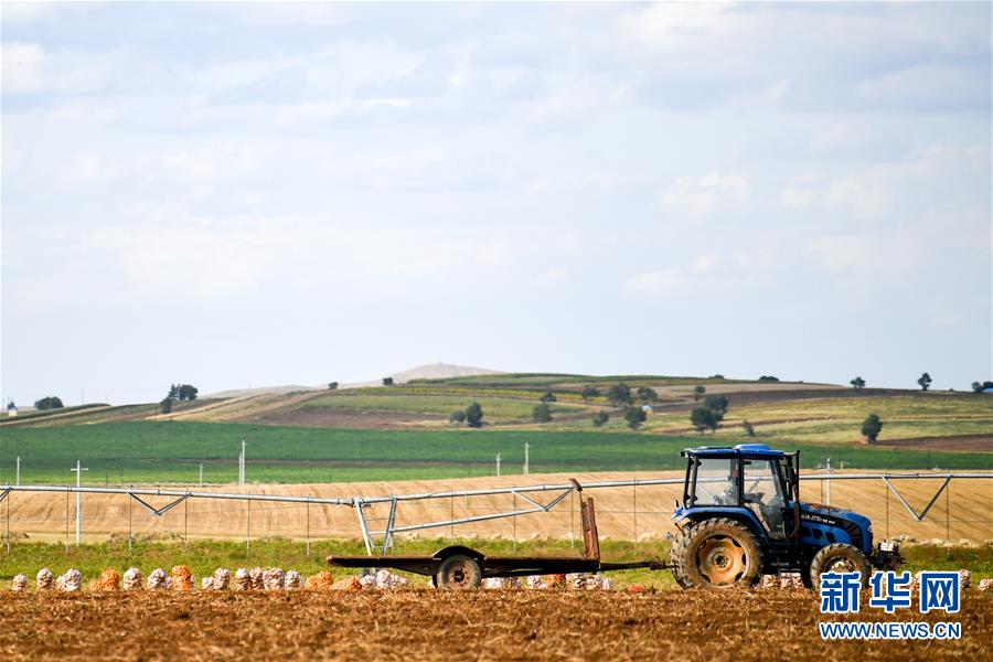 9月14日,一辆农用车行驶在土豆田间。秋收时节,在内蒙古自治区呼和浩特市武川县上秃亥乡厂汉木台村的农田里,农民忙着收获土豆,一片热闹景象。 新华社记者 贝赫 摄