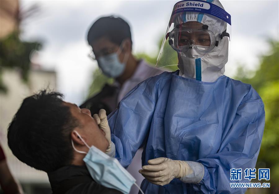 9月15日,医务人员在云南省瑞丽市兴安社区开展核酸检测。新华社记者 江文耀 摄