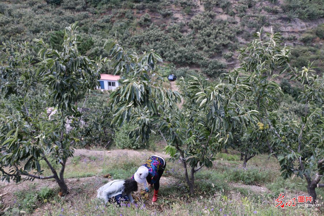 近日,位于河北北部、燕山腹地的宽城满族自治县迎来板栗收获上市时节,当地农民和板栗加工企业忙着采收、收购板栗,供应市场。(刘环宇摄/光明图片)
