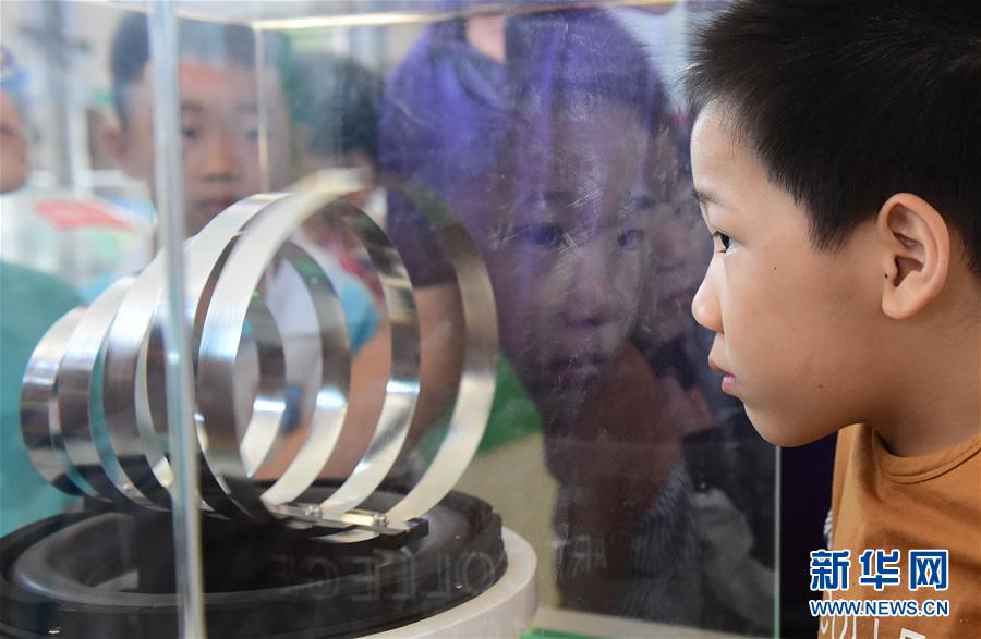 9月18日,沧州市新华区路华小学一名小学生在“流动科技馆”里体验“共振环”。 今年全国科普日活动将于9月19日至25日在全国各地集中开展。9月18日,以“体验科学”为主题的中国流动科技馆全国巡展来到河北省沧州市新华区,公众可在互动体验的过程中近距离感知科技的魅力,接受科普教育。 新华社记者 王民 摄