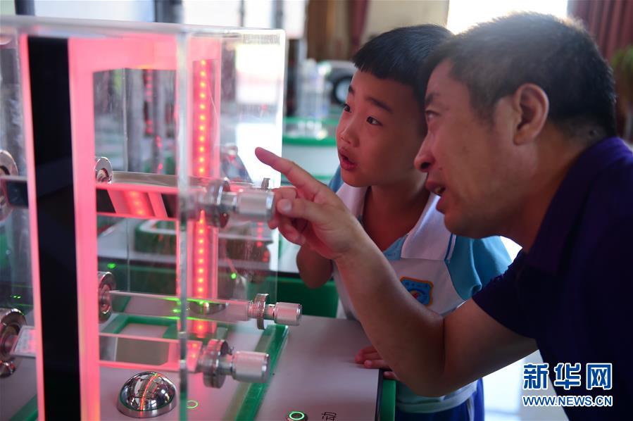 9月18日,沧州市新华区路华小学的科学老师在“光线游戏”设备前为学生讲解相关科学知识。 今年全国科普日活动将于9月19日至25日在全国各地集中开展。9月18日,以“体验科学”为主题的中国流动科技馆全国巡展来到河北省沧州市新华区,公众可在互动体验的过程中近距离感知科技的魅力,接受科普教育。 新华社记者 王民 摄