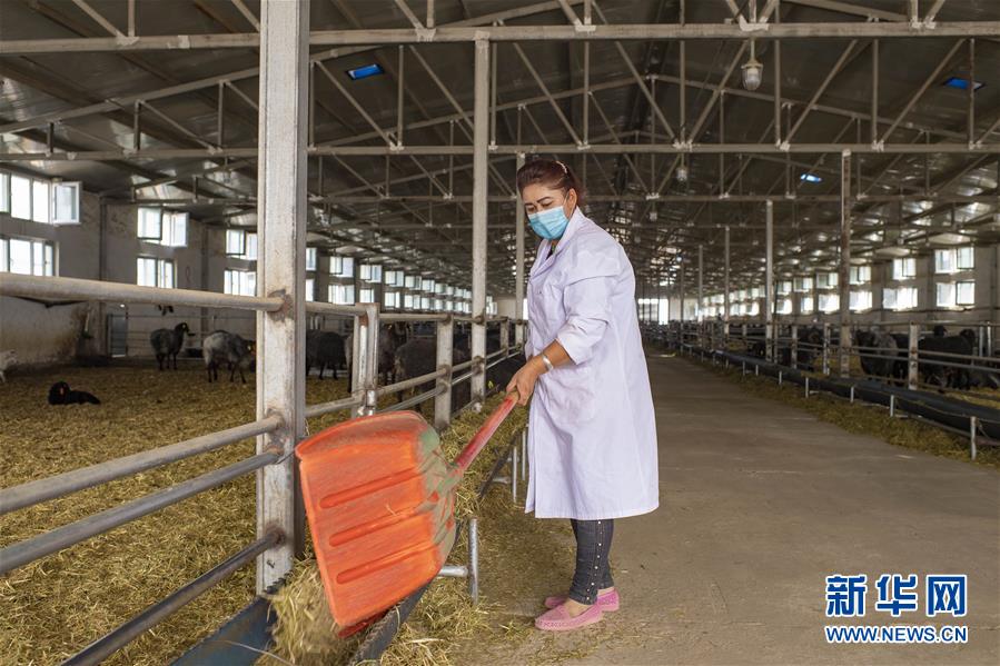 新疆策勒县策勒乡铁热克艾日克村的村民在当地一家牧业公司养殖基地上班(9月19日摄)。 新疆和田地区地处塔克拉玛干沙漠南缘,是全国深度贫困区。近年来,和田地区把产业促脱贫作为一项重点工作。洛浦县、策勒县等地结合产业发展规划,大力招商引资,发展特色养殖产业,采取“基地+合作社+农户”模式,以规模养殖经营为依托,通过托管分红和吸纳就业,带动建档立卡贫困户增收。 新华社记者 胡虎虎 摄
