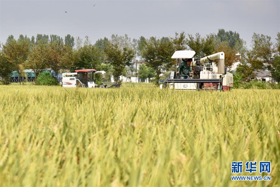 9月20日,农机手操作收割机在稻田里进行收割作业。 临近秋分节气,位于巢湖岸边的安徽省肥东县店埠镇的王军民家庭农场,尽管1500亩水稻在汛期受到了降雨影响,但由于排水及时、田管科学,仍取得了不错的收成。眼下,农场的农机手正抢抓有利天气,力争让稻谷颗粒归仓。 新华社记者 汤阳 摄
