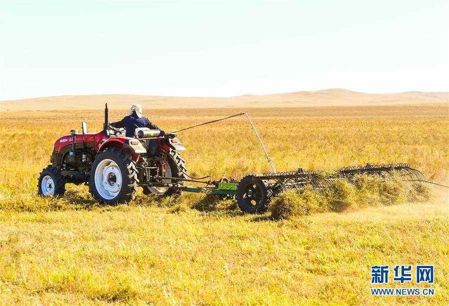9月19日,内蒙古锡林郭勒盟锡林浩特市宝力根苏木的牧民在草场上打草。 金秋时节,生活在内蒙古锡林郭勒盟锡林浩特市宝力根苏木草原上的牧民,进入了繁忙的牧业生产季。他们一边忙着运送牲畜出栏交易,一边打草、收草捆,为即将到来的冬季做准备。 新华社记者 彭源 摄
