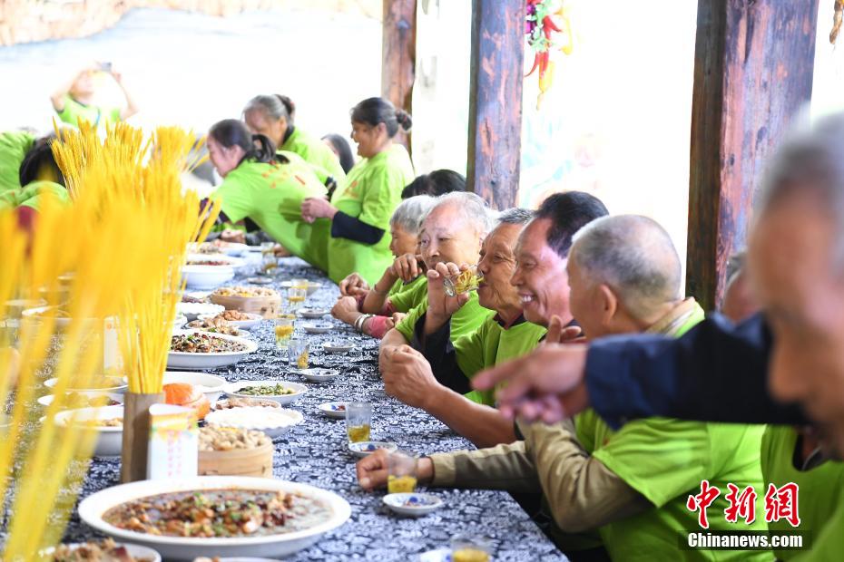 重庆璧山村民摆长桌宴庆丰收