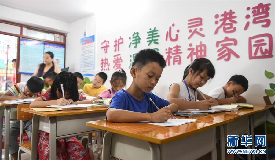 融安县易地扶贫搬迁安置点康欣小区举办七彩假期系列活动,帮助刚走出山区的孩子欢度暑假(8月20日摄)。 广西是全国脱贫攻坚主战场之一。2015年以来,广西举全自治区之力,创新性开展工作,加快贫困地区交通基础设施建设,让大山里的贫困群众告别“出行难”;开展饮水工程建设,让每一个村民喝上“放心水”;积极推进易地扶贫搬迁工程,将约71万贫困人口从“一方水土养不好一方人”的地方搬出;大力提升贫困学生教育保障水平和贫困地区教育发展质量;大力发展扶贫产业,积极推进就业扶贫工作,以稳就业促脱贫。经过几年的努力,广西贫困地区生产生活条件得到明显改善,社会经济发展日新月异,各族群众一起迈向幸福新生活。 新华社记者 张爱林 摄