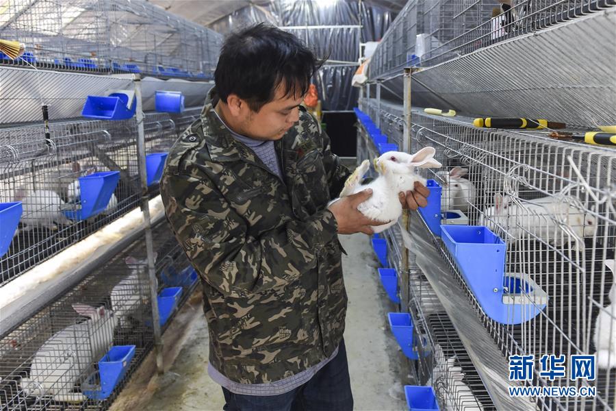 都安瑶族自治县东庙乡弄棉村返乡创业者韦克林在观察幼兔的发育状况(3月18日摄)。 广西是全国脱贫攻坚主战场之一。2015年以来,广西举全自治区之力,创新性开展工作,加快贫困地区交通基础设施建设,让大山里的贫困群众告别“出行难”;开展饮水工程建设,让每一个村民喝上“放心水”;积极推进易地扶贫搬迁工程,将约71万贫困人口从“一方水土养不好一方人”的地方搬出;大力提升贫困学生教育保障水平和贫困地区教育发展质量;大力发展扶贫产业,积极推进就业扶贫工作,以稳就业促脱贫。经过几年的努力,广西贫困地区生产生活条件得到明显改善,社会经济发展日新月异,各族群众一起迈向幸福新生活。 新华社记者 王念 摄