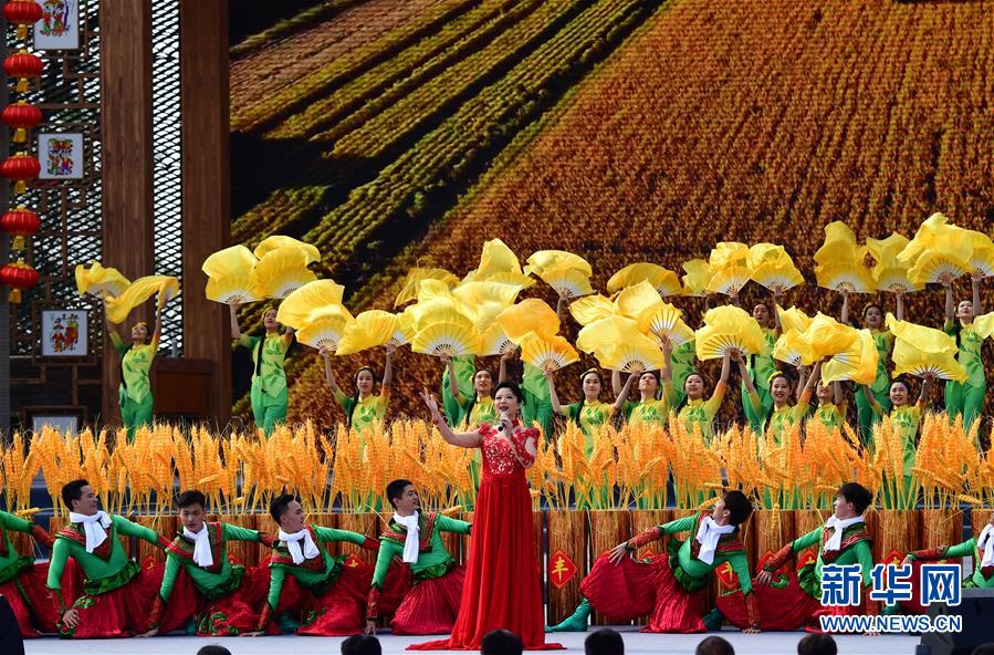 9月22日,在河南省开封市祥符区西姜寨村,演员在表演文艺节目。 当日是2020年中国农民丰收节,河南省主会场活动在开封市祥符区西姜寨村举行。 新华社记者 冯大鹏 摄