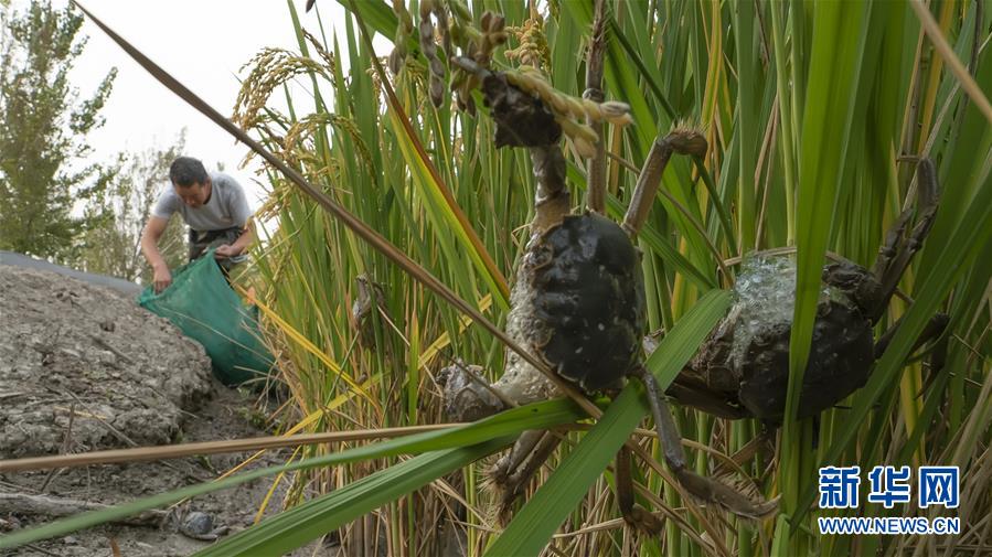 9月22日,河北省唐山市芦台经济开发区海北镇岭头村农民在稻田内收获河蟹。 近年来,河北唐山芦台经济开发区依托农业龙头企业,在发展有机水稻种植的同时,在稻田内养殖河蟹,利用水稻与河蟹的生态关系,减少水稻农业喷洒和河蟹饲料喂食,提高农民经济收益的同时改善生态环境。目前,芦台经济开发区有机稻田养蟹已经发展上万亩,每亩年增收1000余元。 新华社记者 牟宇 摄