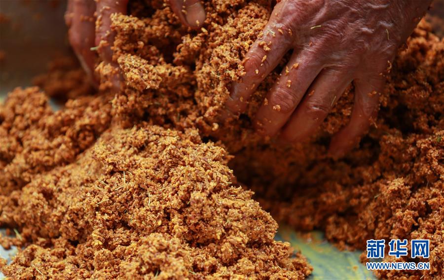 9月24日,四川省泸州市江阳区邻玉街道天堂村的村民在加工桂花。 金秋时节,四川省泸州市江阳区邻玉街道天堂村的村民们忙着打收桂花,制作桂花糕等美食,迎接中秋佳节的到来。 新华社发(刘学懿 摄)