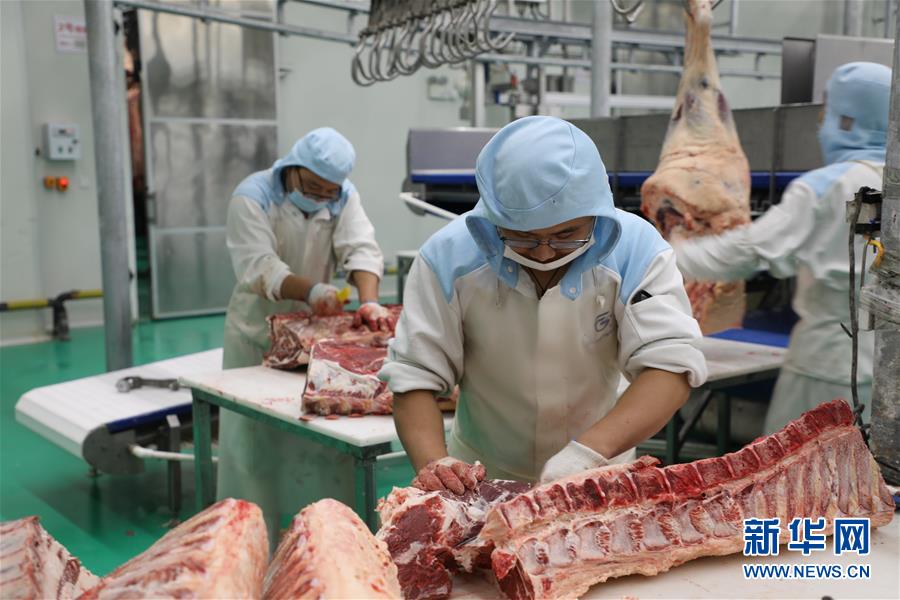 工人在阳信亿利源清真肉类有限公司内分割牛肉(9月23日摄)。 新华社记者 邵琨 摄