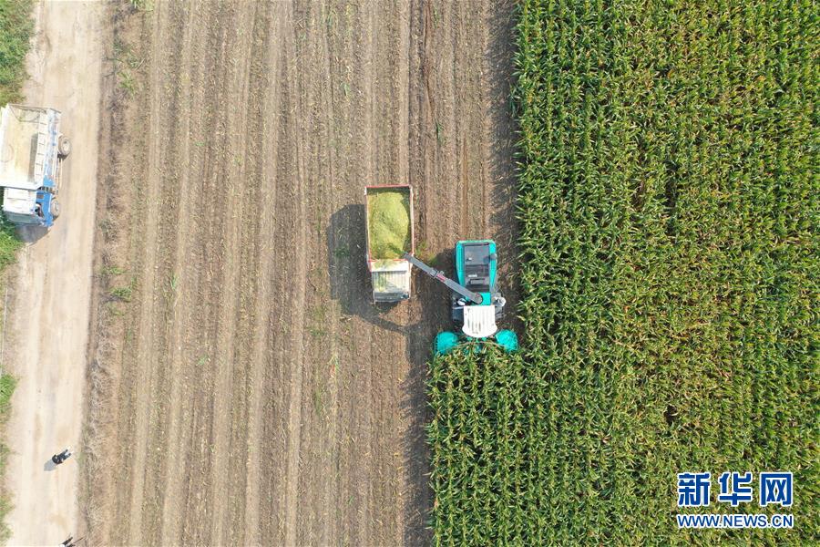 山东省阳信县河流镇刘庙社区村民马宗辉在收获青贮玉米(9月22日摄)。 新华社记者 邵琨 摄
