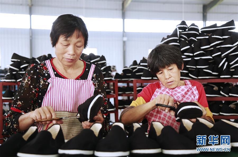 9月26日,在河北省广宗县合义村一家扶贫车间,残疾员工在制鞋生产线上工作。 近年来,河北省邢台市广宗县残疾人联合会通过集中就业、个体就业及技能培训、创业指导等方式,帮扶残疾群众创业就业。截至目前,累计2000余名残疾群众实现就业,就业范围涉及食品加工、手工艺及服装鞋帽等多个领域。 新华社发(张驰 摄)