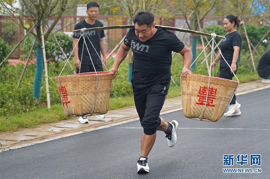 9月26日,当地村民参加挑担接力趣味比赛。 当日,一场别开生面的趣味农耕技能竞赛在江西省南昌市南昌县举行,此次活动是南昌市庆祝2020年中国农民丰收节主场活动之一。 新华社记者 万象 摄
