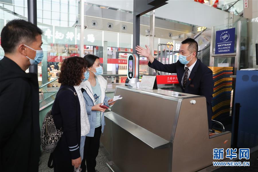 9月27日,在兰州中川国际机场,东航工作人员引导旅客办理登机手续。 国庆中秋假期前夕,兰州中川国际机场针对疫情防控常态化要求,提升服务标准,为旅客提供包括如何申请健康码、机场和机上注意事项、紧急情况处置办法等内容的咨询服务,助旅客安全出行。 新华社记者 马希平 摄