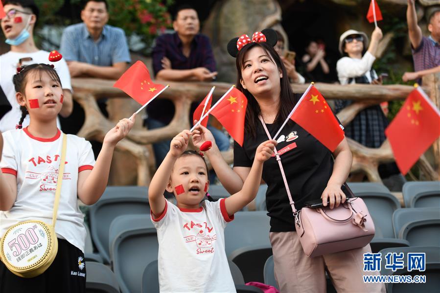 10月1日,在杭州宋城景区,游客合唱歌曲《我和我的祖国》。新华社记者 黄宗治 摄